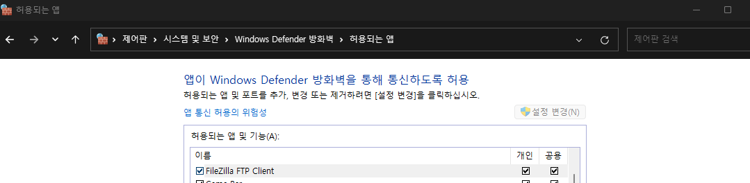 - 방화벽 설정