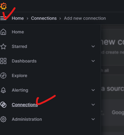 - 왼쪽 메뉴 connections 클릭