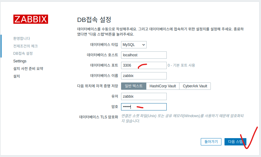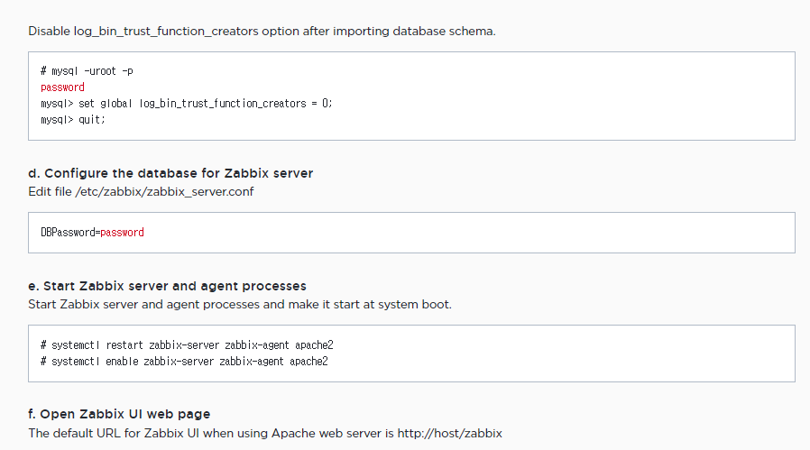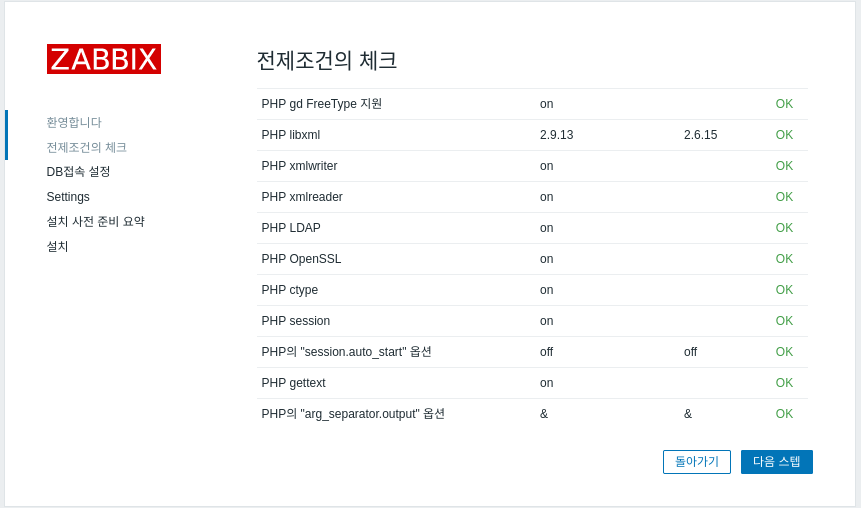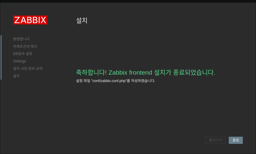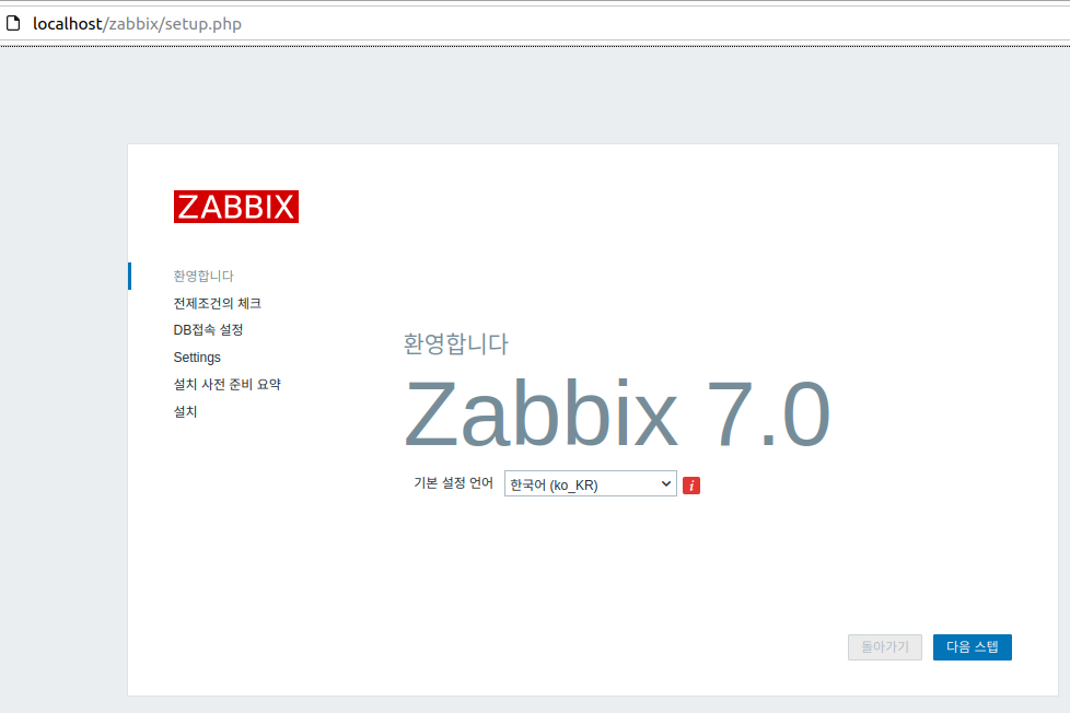 - http://host-ip/zabbix 접속