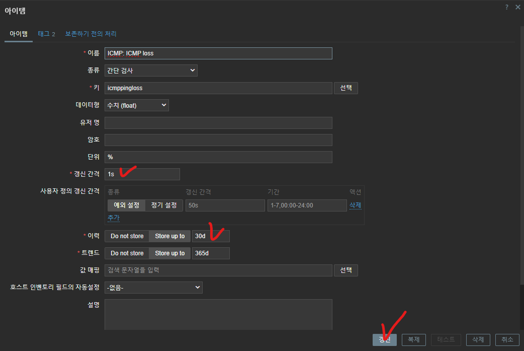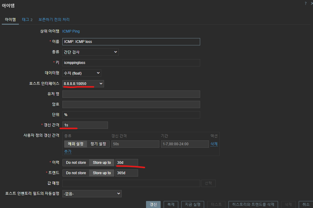 - https://techexpert.tips/zabbix/zabbix-icmp-ping-monitor ICMPping 설정 참조하여 진행