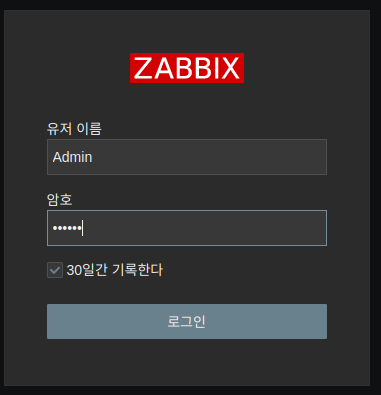 - 자빅스서버 프론트엔드에 접속합니다. `ZabbixServerIP/zabbix`