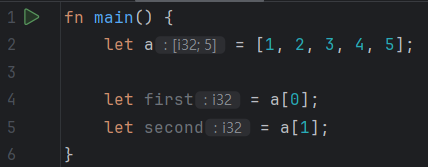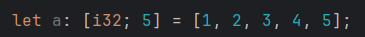 - 배열의 타입을 작성하려면 대괄호 안에 각 요소의 타입과 세미콜론, 그리고 배열의 요소 수를 작성합니다.